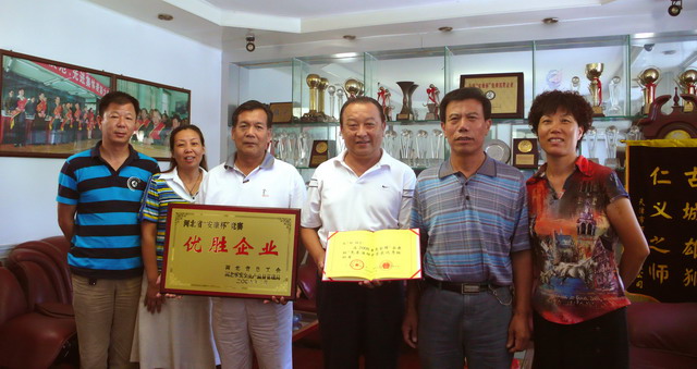 2009年8月12日上午,保定市總工會有關(guān)領(lǐng)導(dǎo)親臨我集團(tuán)公司,為我集團(tuán)公司頒發(fā)河北省“安康杯”競賽活動優(yōu)勝企業(yè)獎牌,為集團(tuán)公司董事長張?zhí)m柱同志頒發(fā)全國“安康杯”競賽活動優(yōu)秀組織者證書。這是我集團(tuán)公司繼榮獲河北省“AAA級勞動關(guān)系和諧單位”后,獲得的又一殊榮,標(biāo)志著我集團(tuán)公司安全管理工作邁上了新臺階。
