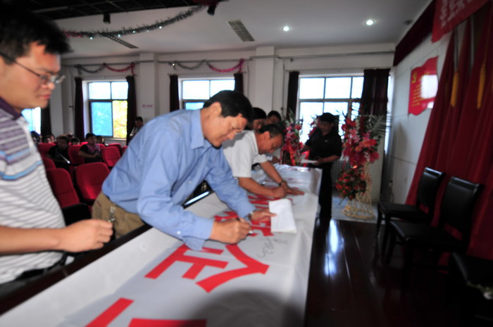 參會(huì)人員在“科學(xué)發(fā)展,安全發(fā)展,創(chuàng)建和諧企業(yè),從我做起”條幅上簽字